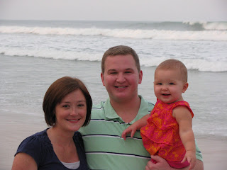 Navy seems to have no fear at times, which fortunately right now just means that she isn't afraid of new experiences. She doesn't cry when she falls or when someone pulls her hair either. So when we went to the beach that first evening, Navy had no problems getting her feet wet in the ocean. She even took off running towards the ocean at one point! She was fascinated by the sand and loved to pick it up and play with it. She only tried to put it in her mouth once, thanks goodness!